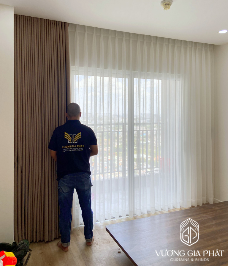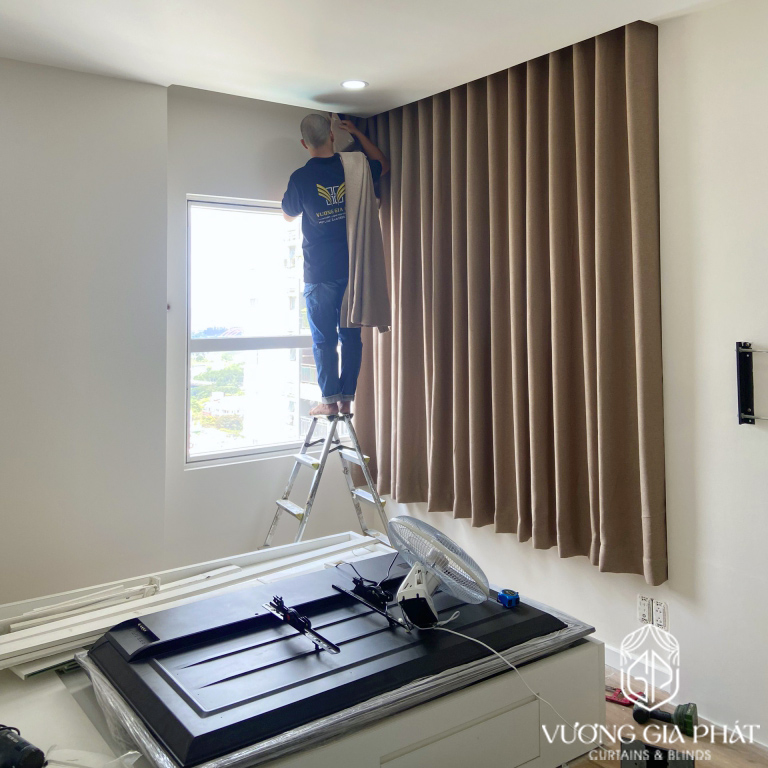 Thi công lắp đặt chuyên nghiệp: Đội ngũ kỹ thuật viên chuyên nghiệp của Vương Gia Phát đã thực hiện thi công nhanh chóng và chuẩn xác. Từng chi tiết nhỏ, từ việc cố định thanh treo rèm đến lắp đặt giàn phơi, đều được kiểm tra cẩn thận để đạt độ hoàn thiện cao nhất.